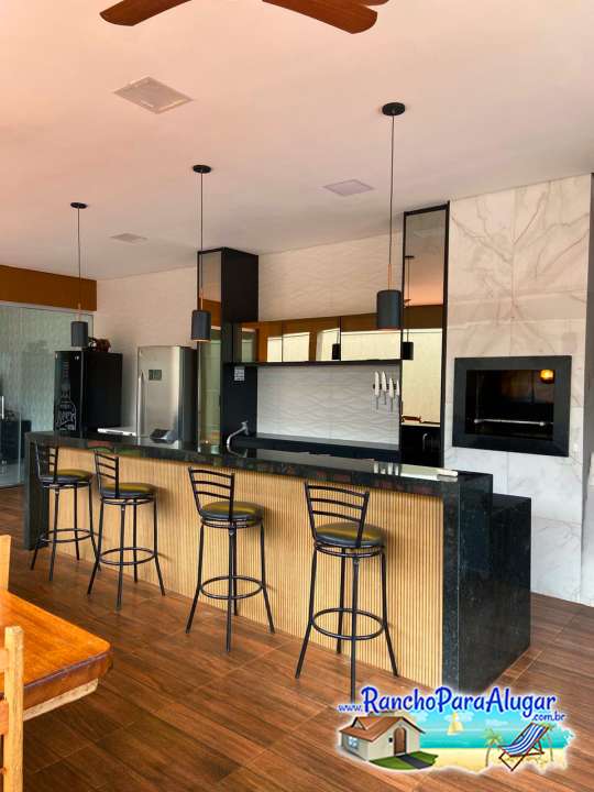 Varanda ampla com área para churrasco com Cervejeira e churrasqueira de alvenaria